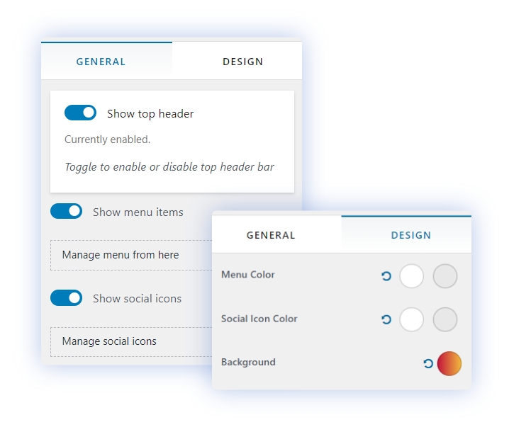 - Choose scroll to top icon text color / hover color and background color / hover color