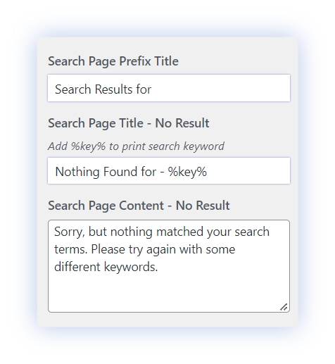 - Dashboard > Appearance > Customize > Pages > Search Page