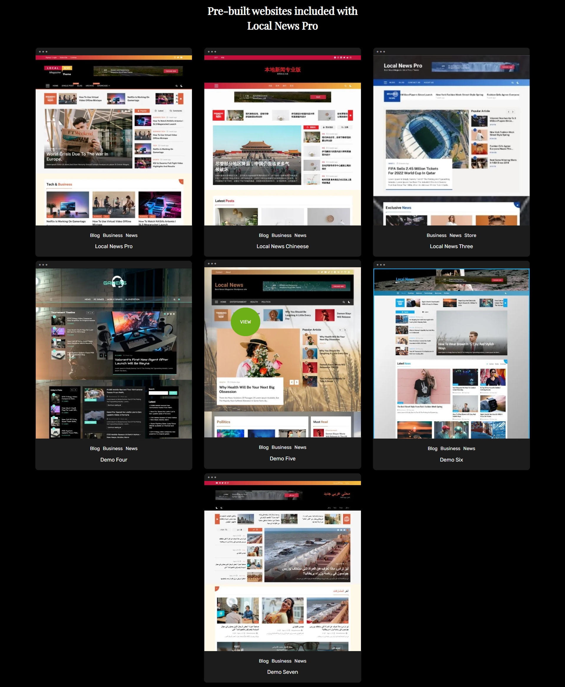 We would like to thank you for choosing Local News. Now, it’s so easy to make each website unique with Local News. Local News Pro is suitable WordPress Theme for news magazine, lifestyle, fashion, photography, food, beauty, helps you to write articles and blog posts in a specific niche. We’ve added incredible, premium, and customizable features for a high-quality browsing experience from all types of devices. The sophisticated design, clean coding, responsive and multiple layouts, intelligent ads, and spectacular grid system will make your digital experience smooth and satisfying. Local News Pro is also built with input from SEO Experts. To make the theme Search Engine and Mobile friendly features have been enabled that will help rank your web pages on search engines and load the pages faster on user’s devices. Check out our beautiful pre-built demos now: All pre-built demos